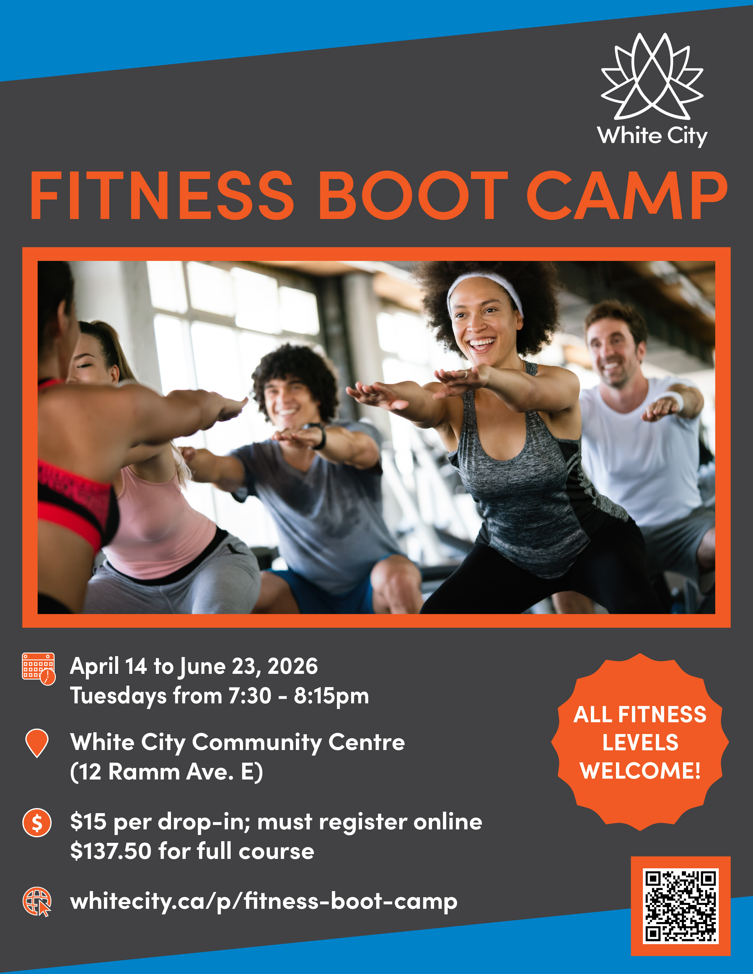Sessions take place at the White City Community Centre (12 Ramm Ave. E) from 7:30 - 8:15PM