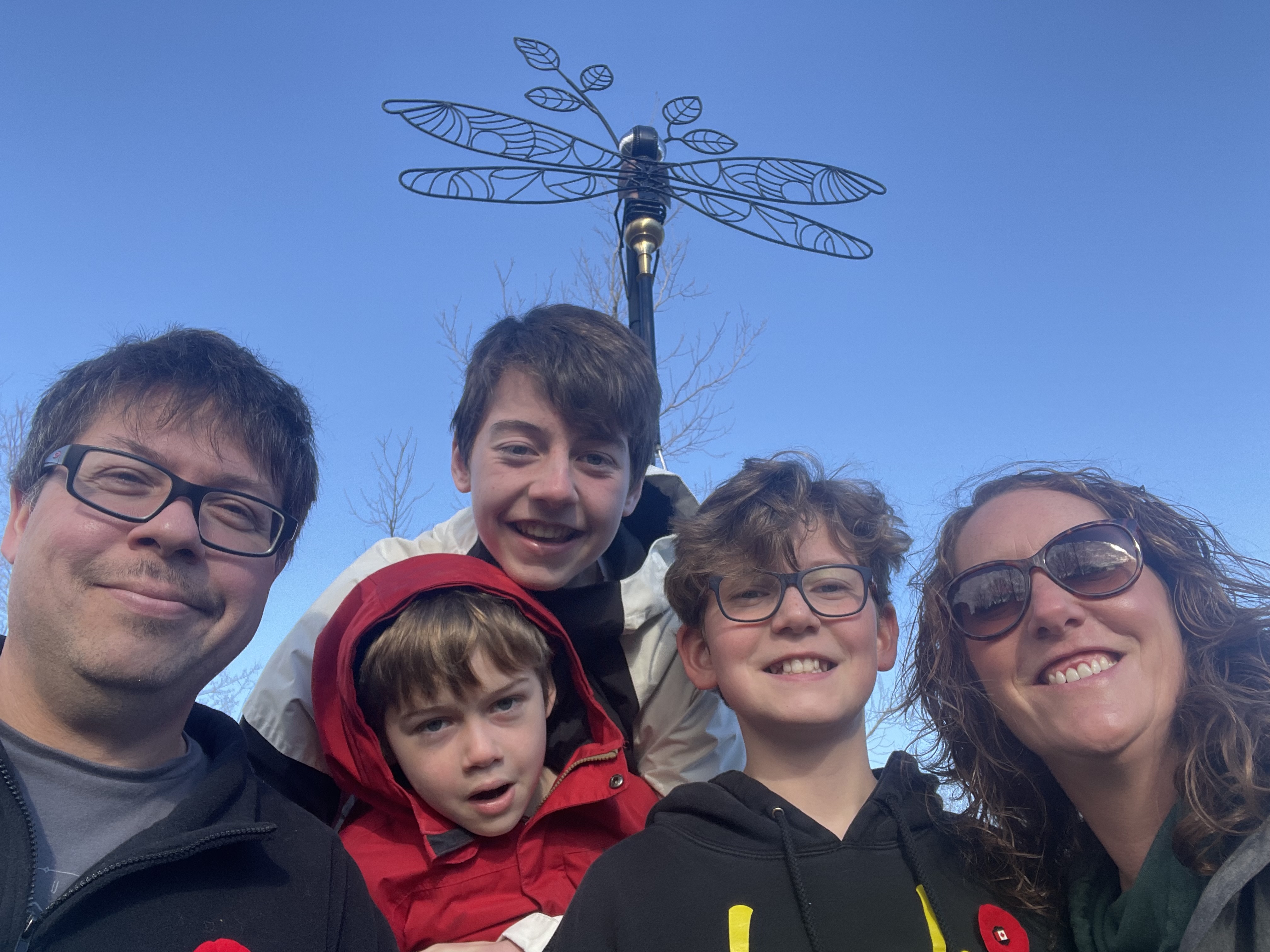 The Town chose to place the dragonfly at Emerald Ridge Park based on public engagement with residents. Through a community survey, many people asked for art to be placed in parks, along pathways, and in high-traffic areas. Emerald Ridge Park was a natural fit: it’s a busy spot where walking paths meet and it’s close to an open green space used for sports, allowing many people to enjoy the sculpture.